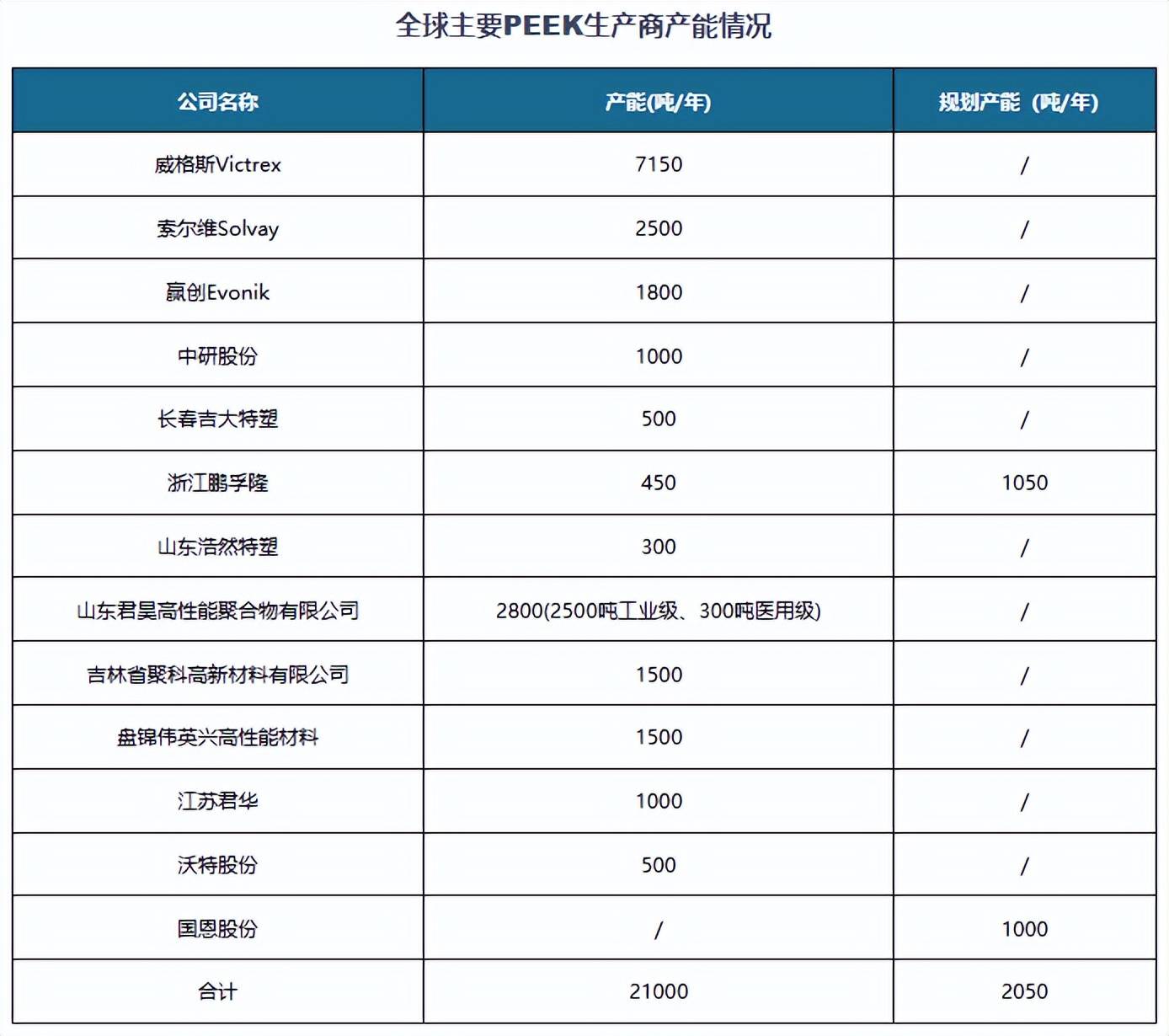 作为战略性原材料,PEEK材料行业呈现高度集中的市场格局,此前主要由海外巨头主导,2024年威格斯、索尔维和赢创三家企业的产能占全球比例超六成,其中仅威格斯一家占比就在四成以上。